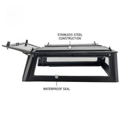 Textured Powder Coat Finish: The tough e-coat and two stage black powder coat finish not only adds a striking aesthetic but also provides extra protection against the elements, making your topper look great season after season.