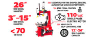 The Katool KT-T830 Wheel Clamp Tire Changer is a powerhouse for changing tires with ease! Its tough alloy steel jaw and stainless steel mounting head are designed for durability. The pedal-controlled air gauge and spade cover keep things simple and protect your rims. With a user-friendly pedal system, top-notch motor, and efficient lubricator, it's a breeze to change tires. Tailored for North America with a strong 110V motor, it even comes with a double side assist arm and a stainless bead breaker cylinder.