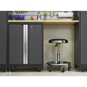 Elevate the aesthetics and organization of your garage with the Bold Series Cabinetry. Crafted with robust steel frames, these cabinets offer exceptional strength, making them perfect for storing sports equipment, seasonal decorations, and tools. The powder-coat paint finish provides durability against scratches and rust, ensuring the cabinets can withstand rugged use. Convenient full-length aluminum handles grant easy access to your belongings, and the lockable doors provide added security.
