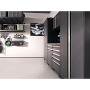 The integrated handles maintain a sleek cabinet front, preventing snags. The durable paint finish is available in various colors to suit your style. Additionally, the included valance lets you conceal cables and attach optional undermount LED lighting for a showroom-worthy garage. Combine multiple wall cabinets for efficient use of your wall space, or customize your garage organization with base cabinets, lockers, slatwall, and shelves.